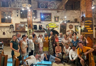 Urfa türküleri eşliğinde samimi ve coşkulu bir sıra gecesi atmosferi.